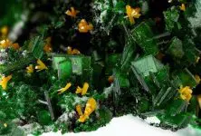 È un minerale infernale. È formato da cristalli verdi ed è un fosfato idrato di uranio e rame, altamente radioattivo. Molti collezionisti non hanno resistito al fascino di questi cristalli fluorescenti ma si sono esposti al rischio di tumore a causa dell’emissione di gas radon.