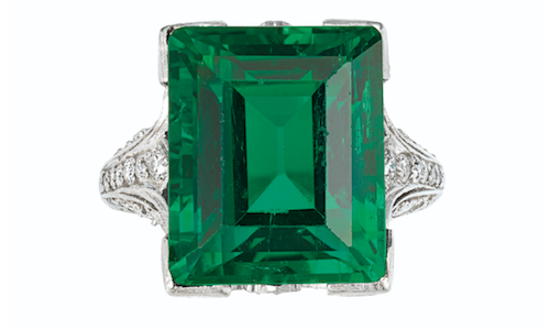 Questo anello non è in vendita, ma si trova nella Gem Gallery del Museo Nazionale di Storia Naturale a Washington DC (Stati Uniti). È un anello da 37,8 carati, fatto con 61 pietre, di cui uno smeraldo e 60 diamanti (15 carati).
