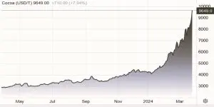 I prezzi del cacao hanno raggiunto nuovi record, superando per la prima volta i 9.000 dollari a tonnellata, mentre è in corso una crisi dell’offerta senza precedenti. Dietro a questo aumento vertiginoso si nascondono gravi preoccupazioni per i produttori di cioccolato, che si trovano ad affrontare giganteschi problemi legati alla disponibilità di fagioli di cacao.