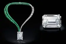 Un impeccabile diamante bianco da 163,41 carati, che adorna una meravigliosa collana di diamanti e smeraldi, era il pezzo forte dell’asta di Christie, tenutasi il 14 novembre a Ginevra.