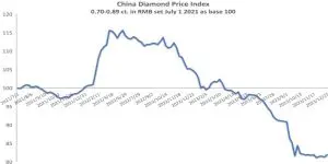 Grafico dei prezzi dei diamanti (0,70-0,89 carati) allo Shanghai Diamond Exchange