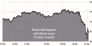 L’argento crolla di oltre il 12%, segnando la sua settimana peggiore dal 2020, mentre i dazi, i timori di recessione e le richieste di margine riducono drasticamente la domanda.