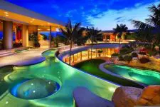 - Palazzo Amore in California, Stati Uniti (195 milioni di dollari). È una villa in stile mediterraneo di 5.000 metri quadrati, 1.400 dei quali dedicati all’intrattenimento, con una sala con una pista da ballo girevole. La casa dispone anche di 12 camere da letto, 23 bagni, una pista da bowling, un teatro, campi da tennis, piscine, specchi d’acqua, cascate e un garage che può contenere fino a 27 automobili.