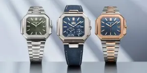 Patek Philippe ha infranto la tradizione con l’introduzione del Cubitus, un modello da 45 millimetri con linee angolari nette e cassa bicolore. Il quadrante blu minimalista, punteggiato da accenti in oro rosa, crea un’eleganza architettonica che ridefinisce il design degli orologi contemporanei. Prezzo: da 41.250 dollari.