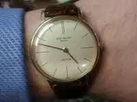 Si tratta di un modello raro, immesso sul mercato negli anni ’50. La cassa è in oro giallo a 18 carati, con un diametro di 33 millimetri e una profondità di 7,55 millimetri. Ha un movimento meccanico a carica manuale con 18 rubini.