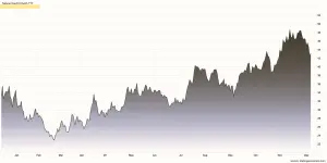 Grafico prezzi del gas (eur/MWh) nell'ultimo anno (TTF)