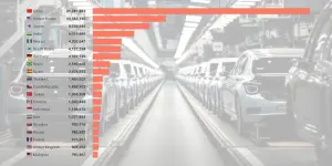 Tra gli altri paesi spiccano il Brasile con 2.549.595 veicoli, la Spagna con 2.376.504, la Thailandia con 1.468.997 e la Repubblica Ceca con 1.458.892. La Turchia si attesta a 1.365.296, mentre la Russia ha prodotto 982.665 veicoli. Chiudono la top 20 Francia (910.243), Regno Unito (905.233) e Malesia (790.347).