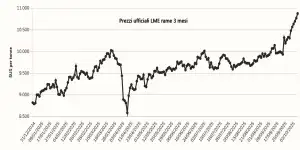 Il prezzo del rame ha toccato ieri (09 ottobre) quota 11.000 dollari per tonnellata, un livello che non si vedeva da oltre 16 mesi.